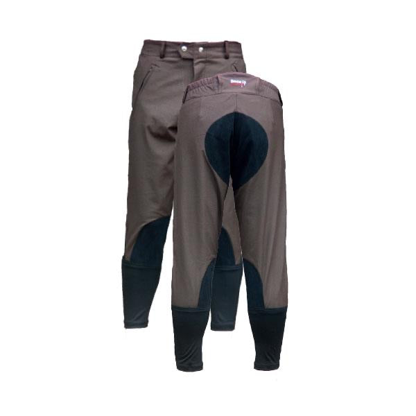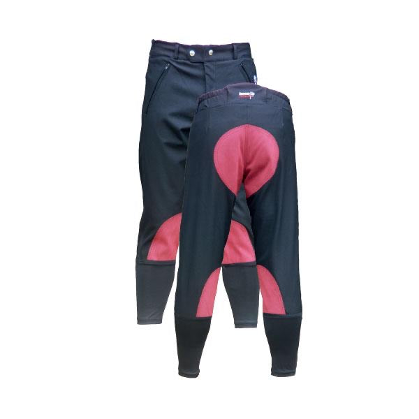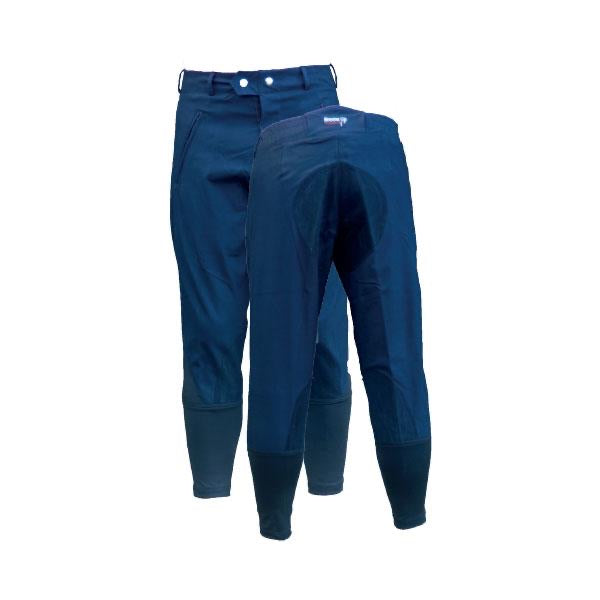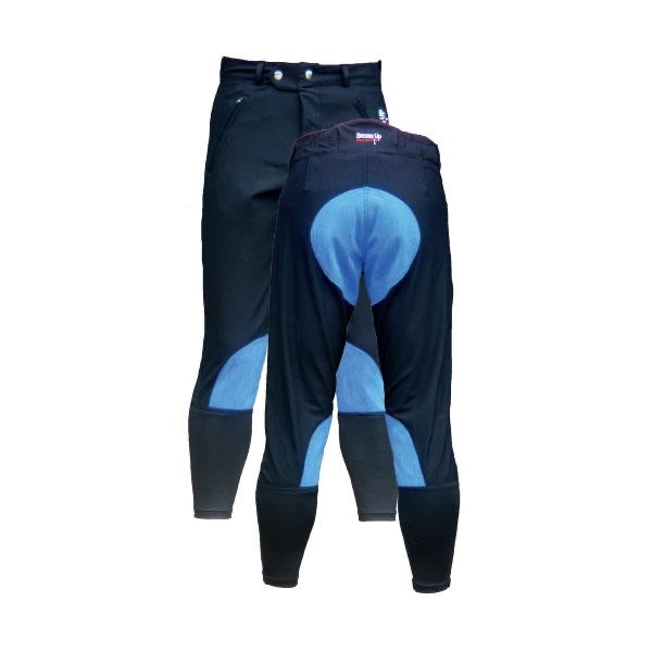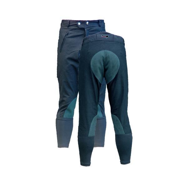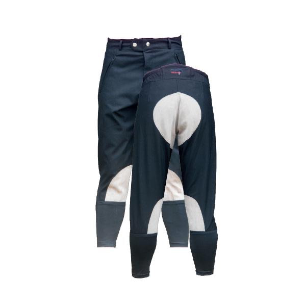 Practical, tough, water resistant with technical teflon coated fabric, these ¾ length breeches are tailored for the exercise/track rider. Optional contrasting seat and lower leg suede patch.