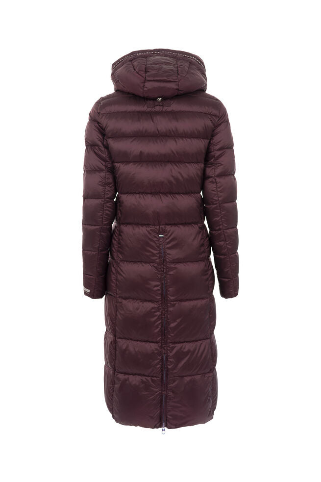 With cosy and warm fake down filling. Shimmering, iridescent outer material. Long zip in the back centre allows the coat to be worn while ridingl Two spacious front pockets with silver zips and jewelry pull with crystal. Long, silver 2-way front zip with Cavallo jewelry pull with decorative crystal. Printed Cavallo ribbon around the hood.