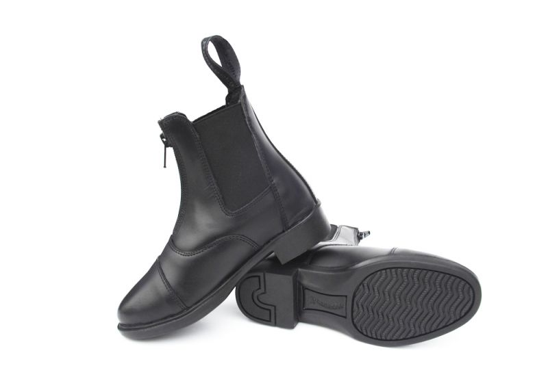 These paddock boots are made from quality leather with a front zip. Pull tab to allow easy on/off and double stitching detail along toe cap. The elastic sides give great range of movement and comfort with non-slip traditionally styled moulded rubber soles.