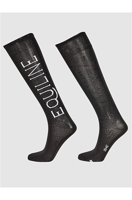 Nice thick riding sock with elasticated band for comfort. Easy to pull on and with additional foot support. Glitter on the calf.