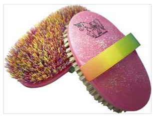 Haas Unicorn Brushes – Pink, glittery backed brush with elastic hand strap. Great for small hands. 150mm x 75mm. Available with soft natural and horse hair bristles, or multi coloured rice root bristles.