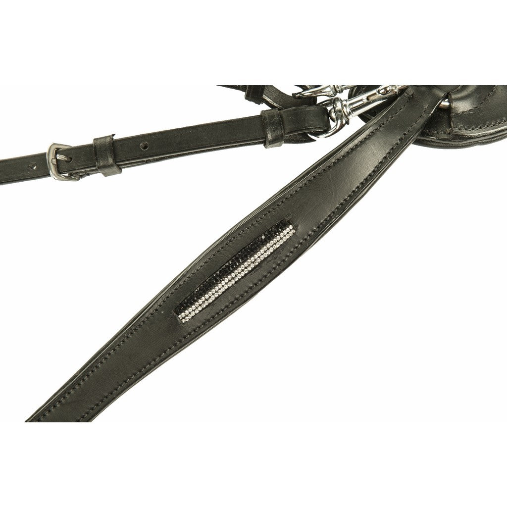 – longlife quality leather– martingale is detatchable– strong silver coloured fittings– soft padding on the pressure points– elasticated insert– decorated with fine crystals– adjustable velcro fit