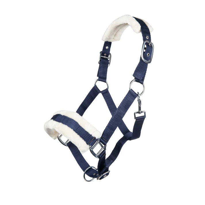 The halter is extra thickly padded with polar fleece and can be opened with a clip. The fittings are stable and silver, the halter can be adjusted on both the throat and nose straps.