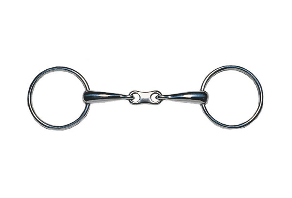 The loose ring french link snaffle has a slightly curved mouthpiece, to allow a more comfortable position for the bit to sit in the horses mouth. The french link is often favoured by horses as the lack of palette pressure makes the bit more comfortable and relieves pressure on the horses bars. Loose rings give the bit more feel, and are good for optimum communication with the horse.